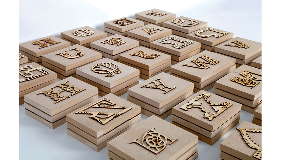 The letterforms for letterpress are also laser cut on 3mm plywood attached to 15mm MDF blocks.